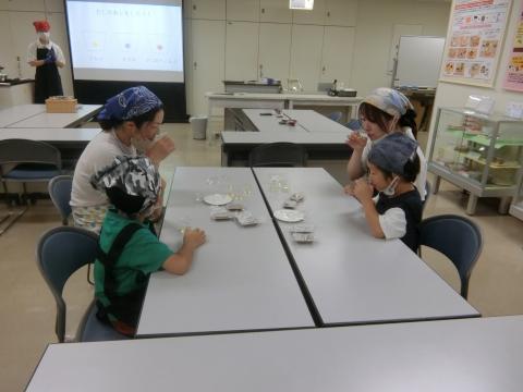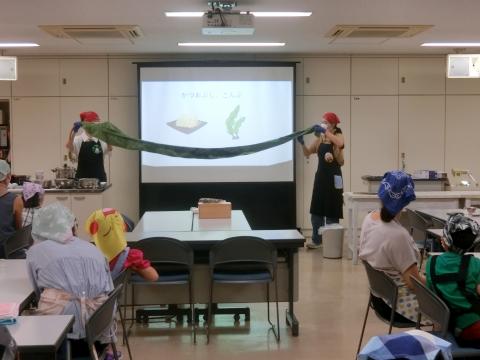 年長児対象で帝塚山大学食物栄養学科の新宅先生と学生による親子で出汁を味わう会がありました。