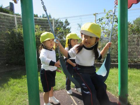 年少さんのお兄さんお姉さんと一緒に遊びましたよ。楽しかったね、また遊ぼうね!