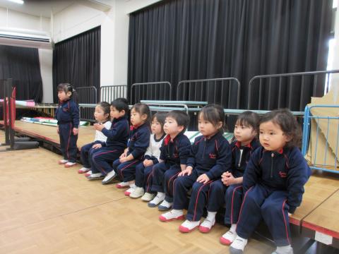 2歳児クラスは、幼稚園の生活発表会のお芝居を見せてもらいました。