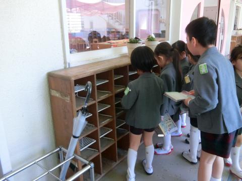 自分がお世話をするお友だちの靴箱やロッカーなどを確認し、「もう覚えた!」「大丈夫!」と頼もしい声が聞かれます。優しいお兄さんお姉さんが待っていますよ。