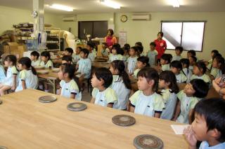 年長組の子ども達が赤膚焼き陶芸家大塩昭山先生にご指導頂き、お茶碗作りに挑戦しました。先生の工房も見学させて頂きましたが、子ども達にとっては未知の世界で、目を白黒させながら見入っていました。そしていよいよ先生の説明を聞き、制作を始めます。四苦八苦しながらも楽しんでいました。12月の制作展にはみんなの「力作」がずらりと並ぶことでしょう。お楽しみに…。