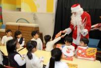 今日は待ちに待ったクリスマス会。サンタさんがお手紙を下さってから、今か今かと待ち続けていました。みんなのところにサンタさんが現れると、大歓声が上がります。大きな白い袋から素敵なプレゼントをひとりずつ渡してくださいました。帝塚山っ子はみんなよい子で良かったね!