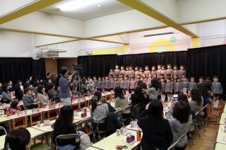 つくし会は幼稚園の卒園生とその保護者の会です。そのつくし会主催のパーティーがありました。年長組全員による歌の発表や西奈良警察署の安全部による交通安全についての人形劇を鑑賞し楽しく過しました。それから園児の手で卒園記念植樹を行いました。今年ははっさくみかんです。来年、おいしい実がなるのが楽しみです。平成25年度卒園児保護者の皆様、ありがとうございました。