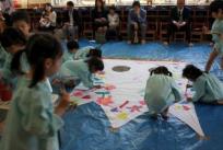 今年度初めての参観日を行いました。いつもは元気いっぱいなのに、おうちの方が来られてちょっぴり不安になって泣いている子もいました。どのクラスも鯉のぼり作りをしましたが、年長組はボディーペインティングをして、後日大きな鯉のぼりに仕上げることに、年中、年少組は保護者と一緒に制作をしました。