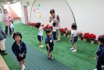 大好きなお母様と離れるのはやっぱり不安ですが、先生と一緒に歌を歌ったり、絵を描いたり、本を読んでもらったり…いろいろ経験するうちにちょっと安心して活動することができてきました。そして先生のしゃぼん玉を追いかけて遊ぶときにはみんな満面の笑顔に変わっていました。登園初日、頑張りましたね。又待っていますよ!