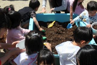 大人気の土曜日親子教室『親子で植物を育てる会』を行いました。講師は帝塚山中高元理科教諭の中谷隆夫先生です。先生の企画は毎回楽しく、今日も虫や自然大好き親子が大勢集まりました。「花と花に来る虫」がテーマで、前半はハナムグリを実際に手に触れて観察しました。後半はモンシロチョウやアゲハチョウの蜜を吸う様子を口元をじっくり観ながら観察しました。キャベツについた幼虫も手に乗せたり、葉っぱを這わせてみたりして楽しくその様子を学びました。みんなの身近な虫たちにたくさん興味がわいてきたようです。その後、親子でお花を植えました。
