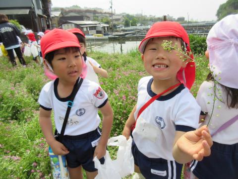 一面に広がっているれんげ畑に、みんな大喜び!!てんとう虫や、蝶々もいて、とても楽しいれんげ摘みになりました。