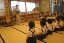 いよいよ年中組の礼法が始まりました。尾崎先生にお辞儀の仕方、床の間の意味、お軸の見方等を教えていただきました。初めてのことばかりで少し緊張気味。でも、お部屋に戻ると先生に教えて頂いた「日々是好日」と何度も話していて、とても嬉しそうでした。これから、沢山の事を教えてもらいましょうね。