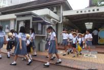 この日は、「今日は帝塚山小学校のお兄さんお姉さんと一緒に遊べる!」と、子ども達も朝からワクワクでした。小学校では、一緒に歌を歌ったり、ゲームをしたり、帝塚山小学校の授業も体験することが出来て、とても充実した1日を過ごすことができました。