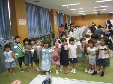 今回は、コップ作りです。小学校の先生から、丁寧にコンピュータの使い方を教えて頂きました。みんな好きなスタンプを選んで “ 車 ・ 恐竜 ・ お花 ・ キャンディー等 ” 沢山つけて世界で一つだけの素敵なコップが完成しました。