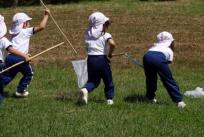 幼稚園バスに乗って、矢田自然公園へ虫とりに行ってきました。草むらを歩くだけでピョンピョン飛び出してくるバッタを「まてまてー」「捕まえた!」「あっー、逃げた!」 と網を持って嬉しそうに追いかけていた子ども達!!