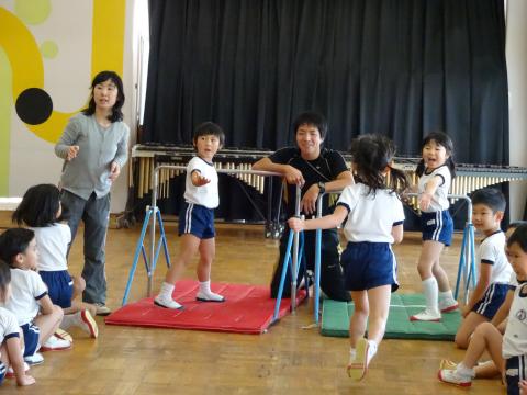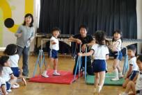 年長組は、障害物競走や組立体操の練習もしています。障害物競走は、クラス対抗です。どちらのクラスが勝つか、一番盛り上がります。組立体操は、友達と息を合わせてすることが大切です。運動会にむけてみんな頑張ってます!!