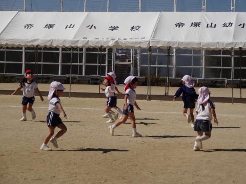 今週は、小学校の運動場で練習をしています。広い運動場にも慣れてきて、のびのび動けることが嬉しくなってきました。競技やリズム作品だけでなく、開会式や閉会式の練習もしています。日曜日の運動会に向けて頑張っている子ども達です!