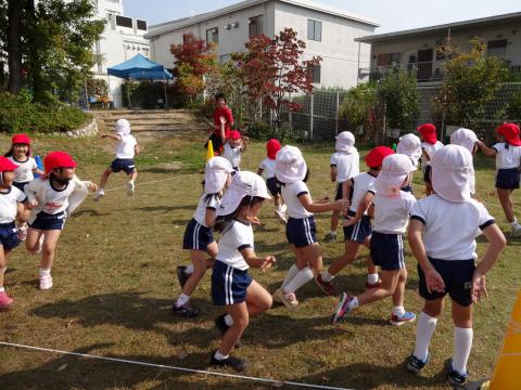 運動会が終わり、久しぶりのチャレンジプログラムです。“だるまさんが転んだ” や “おにごっこ” 等、皆で芝生を駆け回り、思いっきり体を動かしました。「ここにいてたら大丈夫!」「次はあっちに逃げよ!」「捕まっちゃった!」と子どもたちは大興奮でした!良いお天気でとっても気持ちよかったね。
