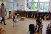 合奏では、大太鼓や木琴、トライアングルなどの楽器の名前と、鳴らし方を教えていただきました。初めて触る楽器にドキドキしながらも、「わぁ~、すごい!!」 「きれいな音だね。」と、みんなとても嬉しそうでしたね。