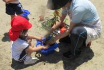 「黄色いお花が咲いてる!」 と、嬉しそうな声。年少さんの植えたプチトマトに黄色い花が咲いてきました。先週、先生の説明を聞いて、植木鉢に両手で栄養たっぷりの土を入れ、優しく植えた苗です。 「大きくなあれ。」 「早く食べたいね。」 「プチトマト、出来たらママにあげる。」 と、毎日お水をあげて生長を楽しみにしている子どもたち。 おいしい、おいしいプチトマトになりますように ♪♪
