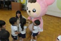 奈良市の子育て応援キャラクター、パパジーカが幼稚園に遊びに来てくれました。「パパジーカ!」と大きな声で呼ぶと手を振ってくれ、子ども達は「かわいいー」 と大興奮! パパジーカは男の子で、鹿せんべいが大好きと教えてくれました。最後は、ギュッと抱き合ったり、握手をしてもらい、子ども達はとっても嬉しそう! パパジーカが見えなくなる最後の最後まで、手を振って見送っていました。