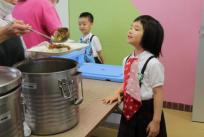 年長さんが小学生と一緒に掘ったじゃがいもが、みんなの給食のカレーになりました。 「今日、みんなでとったじゃがいも食べるんやで」 「じゃがいも、いっぱい入れてください!」 と、食べるのを楽しみにしていた年長さんたち。自分でとったじゃがいもはどれかな?と探したり、たくさん入っていることが嬉しくて友達同士で見せ合いっこしている姿は微笑ましい光景でした。食べてみると....!! 「ホクホクやなぁー」 「こんなに美味しいじゃがいも食べたの初めて!」 と、自分たちで収穫したじゃがいもの味は特別でした。年少さんや年中さんたちからは、「美味しいじゃがいも、とってきてくれてありがとう!」 と、言われて誇らしげな年長さんたちでもありました。