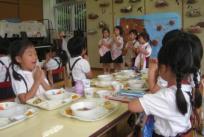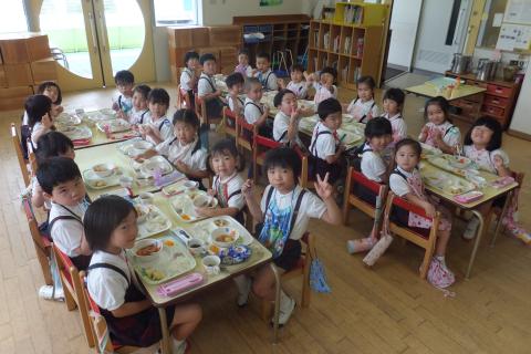 2016.07 年中 年長組と一緒に給食を食べたよ!