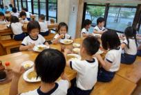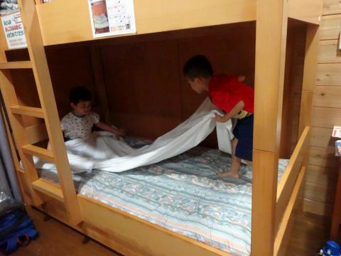 7月28日・29日に年長は、宇治アクトパルへお泊り保育に行ってきました。午前中に寄った太陽が丘では、「バッタいたー!」 「捕まえた!」 「セミ、捕まえたい!」 と、網を持って虫を追いかけていた子ども達。バッタをたくさん捕まえることが出来ましたね。宇治アクトパルでは、川で牛乳パックで作った船を浮かべたり、沢蟹やカエルを探したり、先生と水かけっこをしたりして大喜び!!みんなでお風呂にも入りました。夜のキャンプファイヤーでは、先生とゲームをして大盛り上がりでしたね。いろいろな経験をして楽しんだ1泊2日のお泊り保育でした。