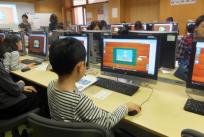 帝塚山小学校で今回初めて、親子でプログラミングの会を行いました。今回の親子でプログラミングの会では、帝塚山小学校のプログラミング教育を親子で一緒に体験し、アニメーション作りにチャレンジ!!プログラミングって何?どうするの!?と初めは疑問がいっぱいでしたが、パソコンの画面で犬やペンギンが歩いたりジャンプしたりするたびに、「わー!すごい!可愛い!」と不思議な世界にビックリでした。さすが年長さん!!“どうやったら横に犬が進むのか”“ジャンプはどうするのか”必死に考えていましたよ。難しいところは、お母さんお父さんに手伝ってもらいました。苦労したからこそ、最後に自分でプログラミングが出来た時には「出来た!面白い!」と達成感がありましたね。