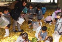 先週、奈良公園へスクールバスに乗って葉っぱ拾いに出かけました。イチョウやモミジ、ナンキンハゼなどの木々が綺麗に紅葉し、みんなのことを出迎えてくれます。「わぁー、葉っぱのじゅうたんやー!」 「ふかふか~!!」 「雪みたいにひらひら葉っぱが落ちてきた!」 と、大喜びの子ども達。夢中で葉っぱを拾っていましたね。 “ ラッパイチョウ ” という円錐の形をした珍しいイチョウの葉っぱを見つけたお友だちもいて、秋を満喫できた楽しい1日となりました。