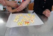 12月10日(土)に帝塚山小学校の中嶋先生にステンドグラスクッキーと噴水フルーツポンチの作り方をご指導頂きました。今年初めて開催のクッキング!! クリスマス会が近いので、パーティーでも楽しめるクリスマスメニューです!! エプロンと三角巾を付けて可愛く変身♪さっそくクッキングスタートです。まずは、クッキーの生地を丸めて伸ばして、好きな型の型抜きをし、「綺麗に型抜きできた!!」「こんなにいっぱい出来たよ!!」と、楽しそうな子ども達。ストローで丸い穴をあけた所に砕いたキャンディーを入れて、オーブンで焼くと良い匂いが….♪「うわぁーおいしそう!」「かわいい!」と子ども達も大満足なとても素敵なキラキラのクッキーが出来上がりましたね。また、オーブンでクッキーを焼いている間、噴水フルーツポンチも頂きました。炭酸の中にラムネを入れると“あら!不思議♪”魔法のように噴水になりました。「わー!すごーい!」と皆もビックリ。その後は、美味しく頂きました。「美味しいー♪」「また家でもしたい!!」と終始笑顔の子ども達でした。また、是非お家でも作ってみて下さいね。