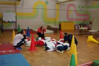 今日の地震避難訓練は、予告なしに行いました。緊急地震速報が流れると、竹馬の練習をしていた年長は園庭で、体操教室のクラスはリズム室で、お部屋にいたクラスはお部屋で、担任のところに集まり、その後決められた場所に避難しました。日頃から教えてもらい、保育室にも貼ってある 『おはし』 の約束を守って避難します。 『おはし』 は、押さない ・ 走らない ・ しゃべらないの頭文字です。1学期、2学期にも火災・地震の避難訓練をしてきましたので、スムーズに出来ましたね。2歳児クラスも一緒に避難訓練しましたよ。