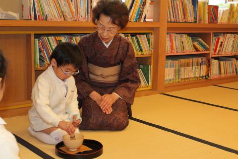 そして迎えた参観の日、一人一人が心を込めてお茶を点て、保護者にお茶をお出ししました。子ども達の一生懸命なおもてなしに参観の保護者の表情も終始にこやかで楽しいお茶席でした。最終日の参観は、一年の嬉しい成長が見え、親子で楽しいひと時が過ごせました。みんな、よく頑張りました。