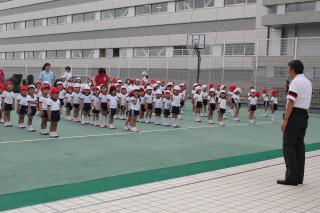 各クラスの保育参観の後、学園内のはとの広場でご家族と一緒に体操を楽しみました。