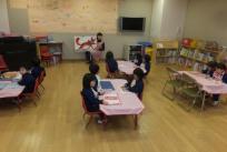 もうすぐ幼稚園の生活発表会です。お兄さん、お姉さんが一生懸命練習しているところを少しのぞかせてもらいました。年少のばら組では、氷の国のペンギンのお話です。お兄さん、お姉さんペンギンが海を泳いだり、潜ったりしているところをみんなじっと熱心に見学しました。「じょうずだったね。」その後、お部屋に帰って2月・3月生まれのお友だちのお誕生日会をお祝いしました。