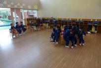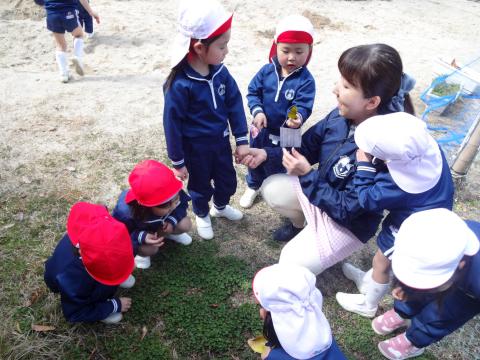 楽しかった春季保育も今日で終わりです。朝から、園庭で春探しをしましたよ。「たんぽぽ咲いている」「こっちにもお花咲いていたよ」「木にはつぼみがある!」「もうすぐで咲くかな?」と子ども達と春の訪れを感じていました。今日の制作は紙コップロケットです。「ここにはお顔を書く」「宇宙みたいに星書いたよ」「ハートいっぱいの可愛いロケットにする」とマジックで描きました。出来上がった後はみんなでロケットを飛ばして、「3・2・1出発!!」「次はかごの中に入るかな?」と嬉しそうでした。お昼から遊んだイス取りゲームも楽しかったですね。次みんなに会うのは4月の始業式です。元気に登園してきてください。