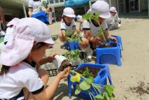 一人ひとり自分の鉢に、枝豆の苗を植えました。「お母さん、お父さん、妹、弟にあげる!」と子どもたちは今からとても楽しみにし...